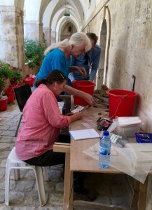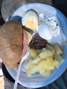 Since we leave for the site so early, breakfast is brought in around 9am. A buffet is set up on tables and rock ledges with a similar spread each day. The first couple of days we were fastidious in trying to clean up before eating. By Day 3-4 most everyone gave up and just dug in. It’s not appetizing to peal an egg with dusty fingers, but hunger triumphs.